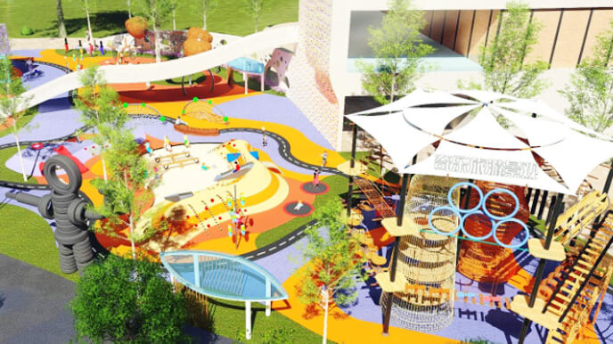 整體兒童樂(lè)園設(shè)計(jì)規(guī)劃概念以森林為主題,設(shè)計(jì)師獨(dú)到的將森林中的各種場(chǎng)景發(fā)揮到空間的各個(gè)區(qū)域。整個(gè)空間潔凈,整齊,充溢著溫馨和幸福感。